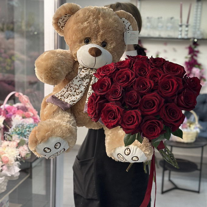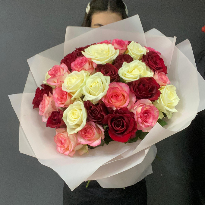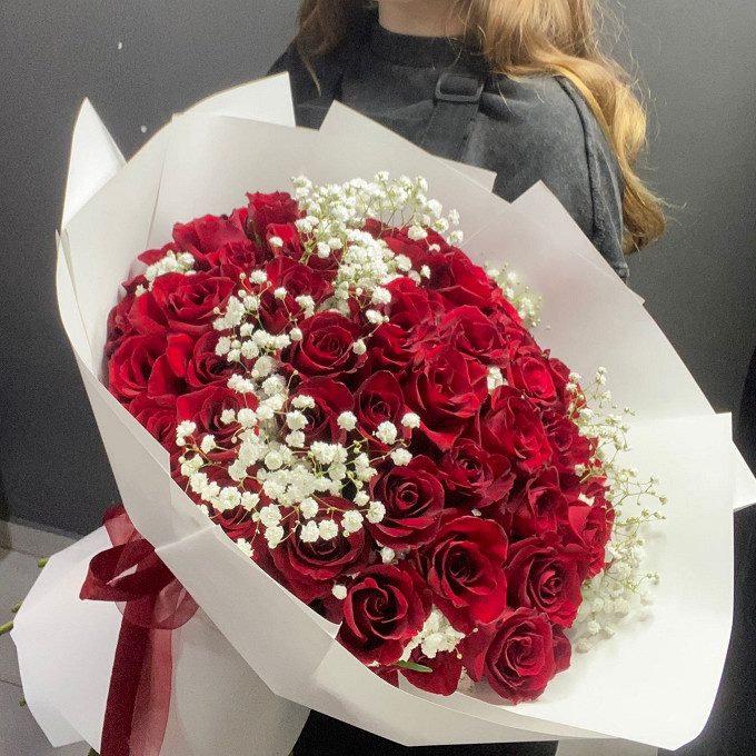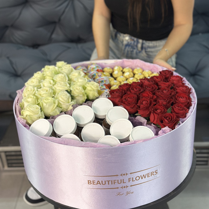 Розы 39шт в подарочной коробке Сладкий Премиум