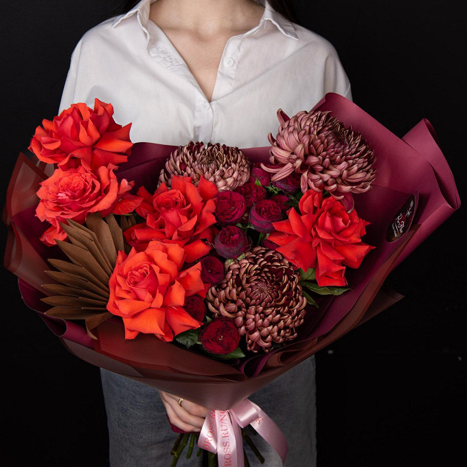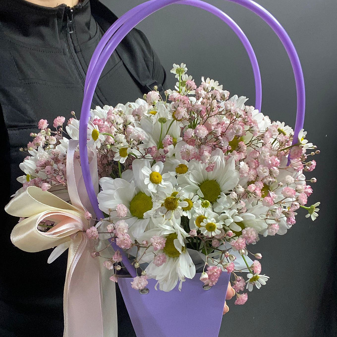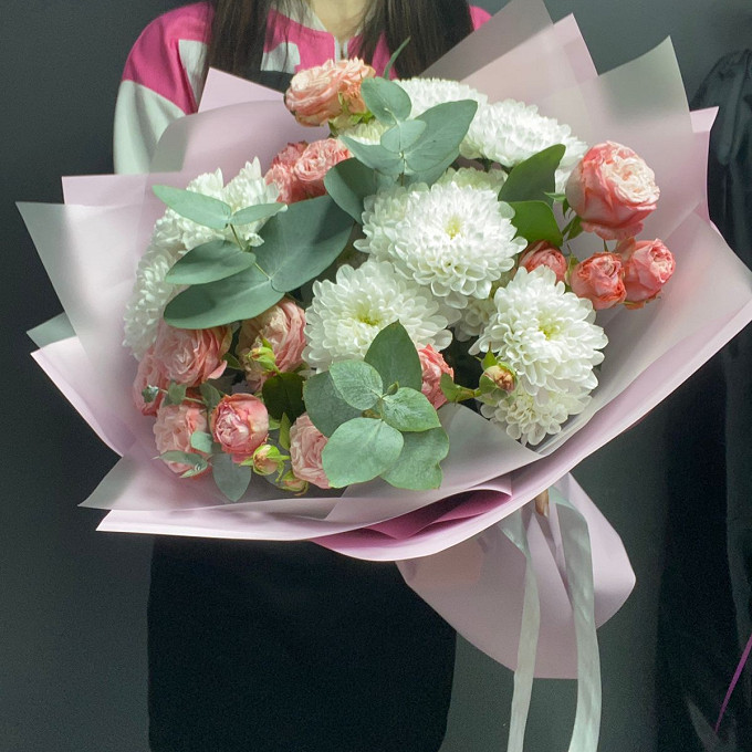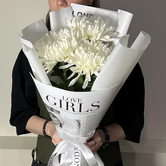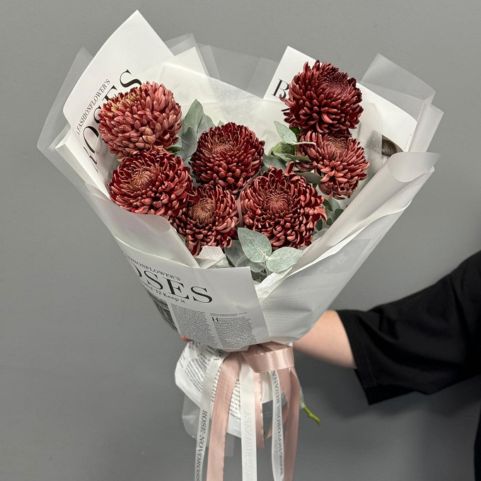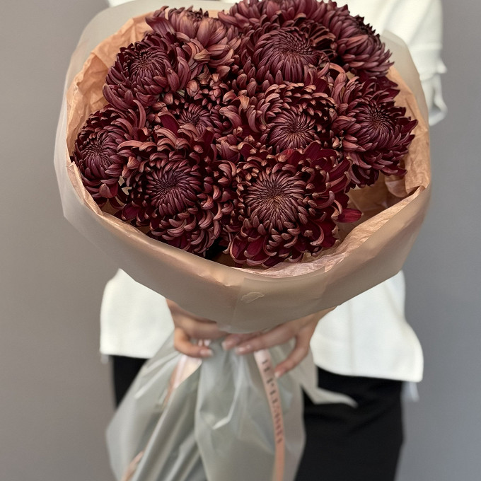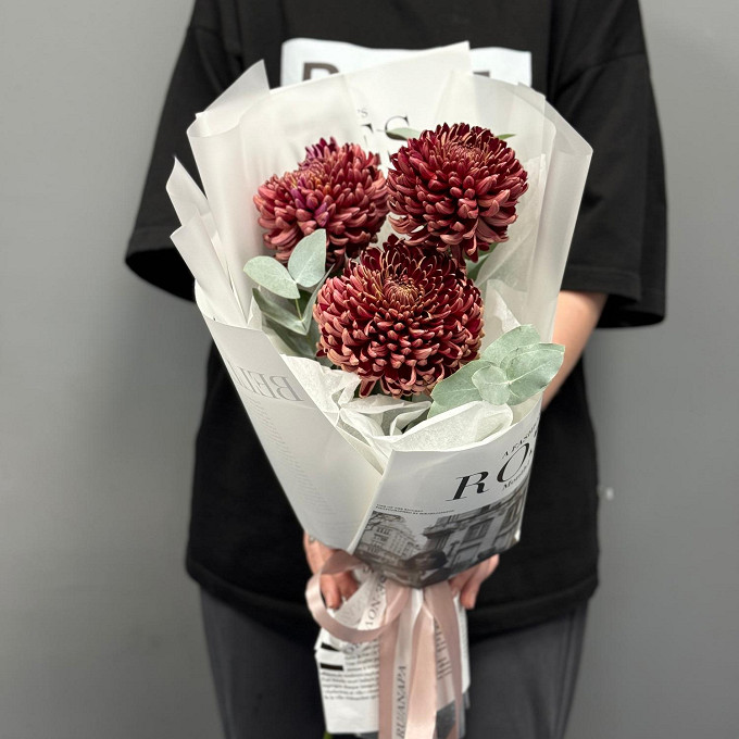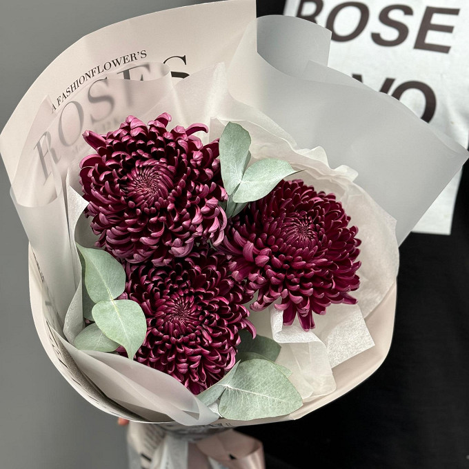 Букет из 3 фиолетовых хризантем "Бигуди"